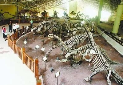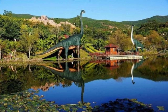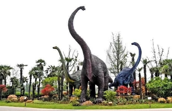 在广场四周可以看到十一组精美的恐龙雕塑,有霸王龙,金时代龙,三角龙等等!